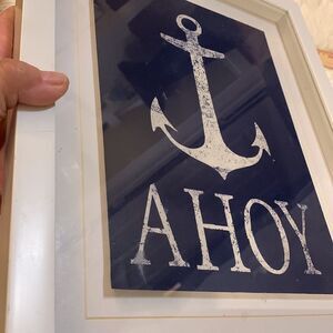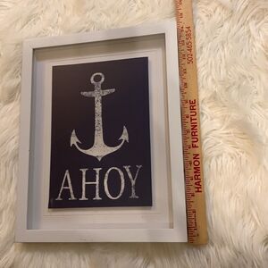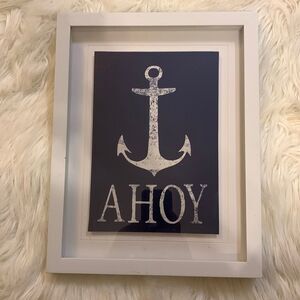 Ahoy wall decor navy blue and white frame. New never hung. Smoke free and pet free home