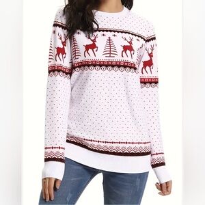 Aibrou Christmas Sweater knitting white/ red festive holiday party ugly sweater