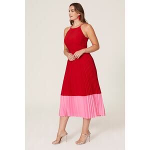 Aidan AIDAN MATTOX Pleated Colorblock Midi Dress - Size 6