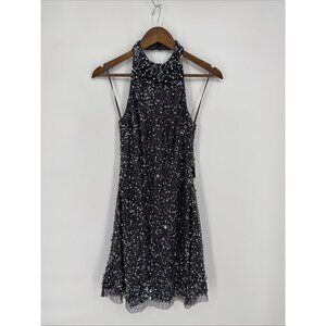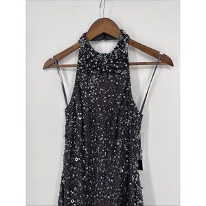 Aidan Adrianna Papell Size 2 Gray Beaded Sequin Halter Cocktail Dress Homecoming