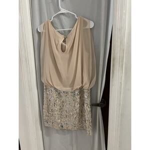 Aidan Aidan Matrix Blush Sequined Blouson Cocktail Dress Sz 10