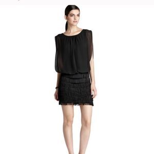 Aidan By Aidan Mattox Fringe Detail Chiffon Blouson Dress in black size 2