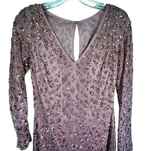 Aidan Maddox NWT Dusty Rose V Neck Long Sleeve Sequin Cocktail Dress Size 6