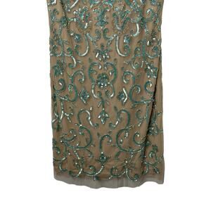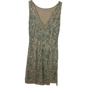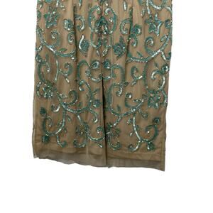 Aidan Matton Sheer Illusion Teal Sequin Gold Beaded Sleeveless Dress Womens Sz 2