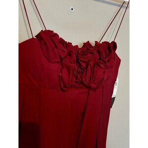 Aidan Mattox 100% Silk Red Burgundy Floral Chiffon Mini Dress Spaghetti Strap 6