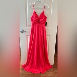Aidan Mattox Aidan By Twist Front Mermaid Gown In Deep Coral