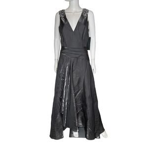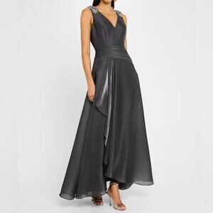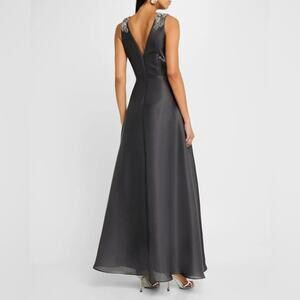 Aidan Mattox Bead-Embellished Iridescent Organza Gown Dark Slate Women’s Sz 10