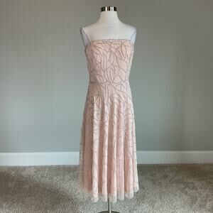 Aidan Mattox Beaded Strapless Fit and Flare Cocktail Party Dress Pink Size 12