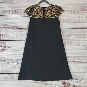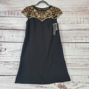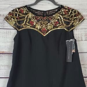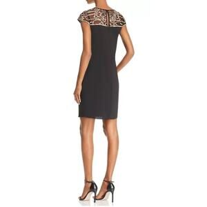Aidan Mattox Black Beaded Cocktail Dress Mesh Sequined Necklline