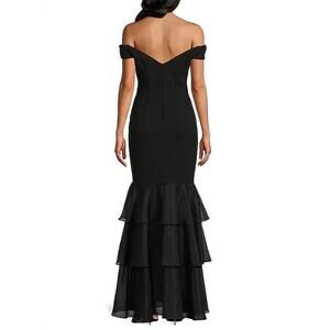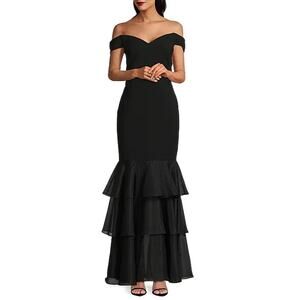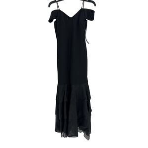 Aidan Mattox Black Bonded Crepe Off-the-Shoulder Mermaid Gown Size 6