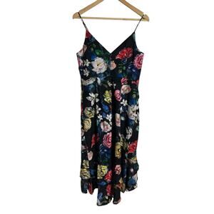 Aidan by Aidan Mattox Black Burnout Floral Print Ruffled Hi-Low Cocktail Dress 8