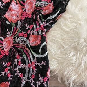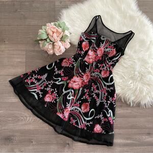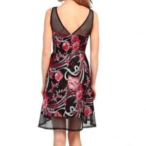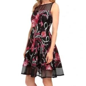 Aidan Mattox Black Floral Embroidered Net Sheer Fit & Flare Dress 0