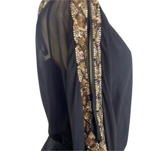 Aidan Mattox Black & Gold Shear Cold Shoulder Embellished Trim Dress Size 18W