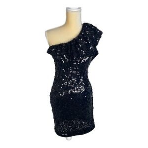 AIDAN MADDOX One Shoulder Black Sequined Mini