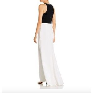 Aidan Mattox Black/Ivory Embellished Halter Formal Maxi Dress Long Gown Size 2 NWT