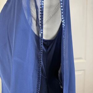 Aidan Mattox Blouson Mini Dress with Sequin Skirt Navy Blue Stretch Size 10. Excellent condition. Blouson style loose fitting chiffon top with tank under, fitted sequin mini , fully lined, pullover with keyhole back button, sleeveless, round neckline, sequin sides on chiffon sleeve. See photos for details and unstretched measurements. View my closet to add other items and bundle to save with one shipping fee!