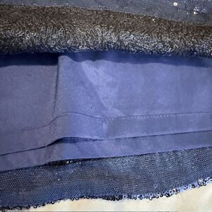 Aidan Mattox Blouson Mini Dress with Sequin Skirt Navy Blue Stretch Size 10