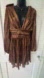 Stunning bronze metallic midi dress. Features a deep V-neck and long sleeves. Perfect for evening events.