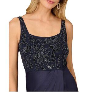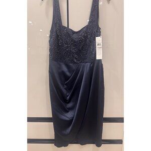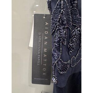Aidan Mattox By Adrianna Papell Navy Beaded Sleeveless Cocktail Dress Size 12