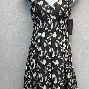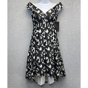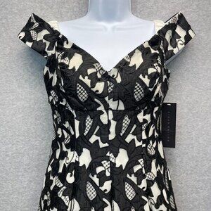 Aidan Mattox Cocktail Dress Womens 4 Black Embroidered Overlay Off Shoulder HOCO