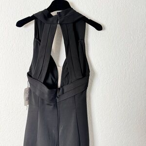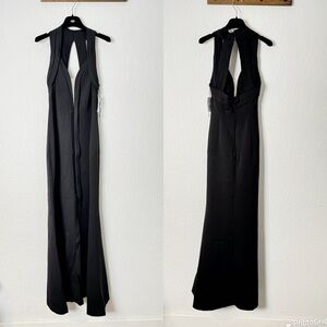 Aidan Mattox Crepe Halter Gown Plunging Illusion V-Neckline Dress