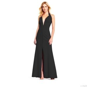 Aidan Mattox Crepe Halter Gown Plunging Illusion V-Neckline Dress