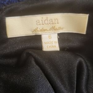 Aidan Aidan Mattox cocktail dress in dark blue with shimmery sparkles for a subtle eye- catching effect. Cocktail length with bodycon silhouette and tulip hem. Very good condition.