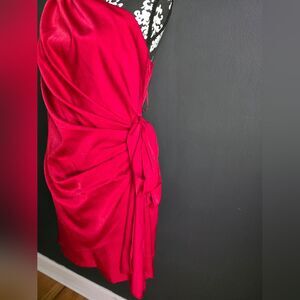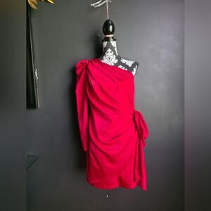 Aidan Mattox Drape Bow Side One Shoulder Mini Dress Red Sz 8 Polyester