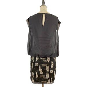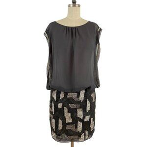 Aidan Mattox Dress Gray Chiffon Upper SilverS equin Bottom Party Cocktail Size 0