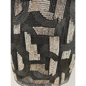 Aidan Mattox Dress in Gray Chiffon Upper with Embellished trim and open sides Silver S Sequin Bottom