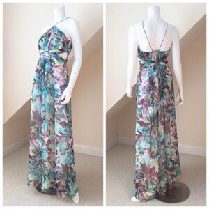 Aidan Mattox Floral Long Cocktail Dress - size 0 cut out sides maxi multicolored