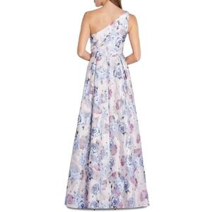 Aidan Mattox Floral Print Crepe One-Shoulder Ball Gown Dress