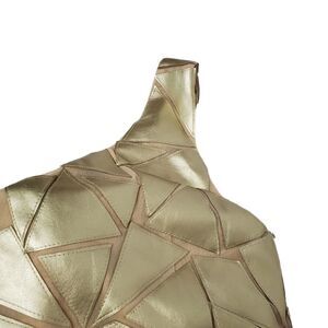 Faux-leather shards mosaic the double V-neck silhouette of a sultry mesh sheath dress for an intriguingly contemporary finish.