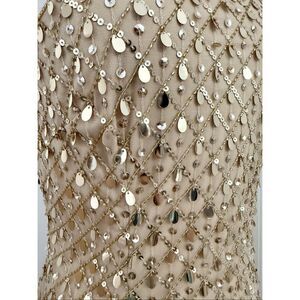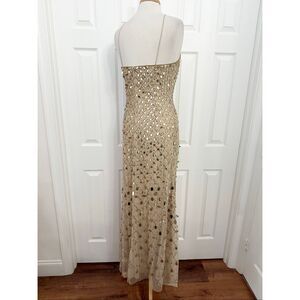 Aidan Mattox Gold Sequin Beaded Embroidered Halter Neck Mermaid Gown Dress 8