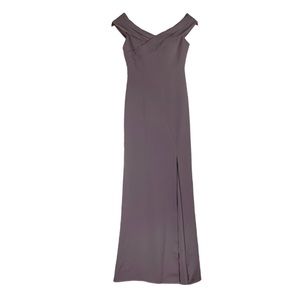 Aidan Mattox Gray Open Shoulder V Neck High Slit Gown Dress Size 0