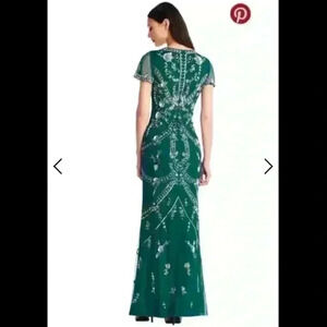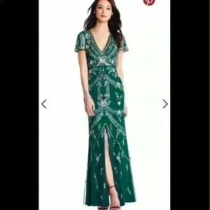 Aidan Mattox Green Floral Slit V Neck Short Sleeve Beaded Women’s 2 Maxi Dress