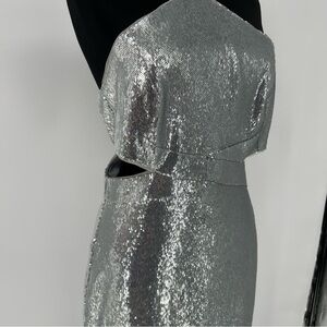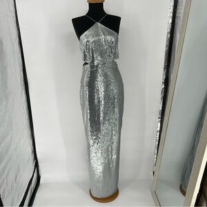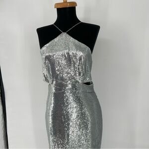 Aidan Mattox Halter Cut Out Maxi Sequin Dress