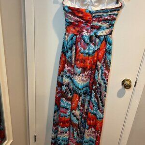 Aidan Mattox Hi Low Feather print strapless chiffon gown, Size 0