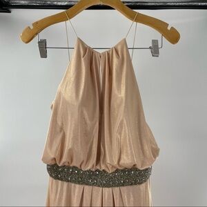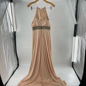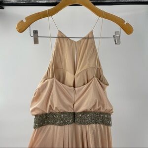 Aidan Mattox Metallic Halter Beaded Maxi Length Formal Gown Dress