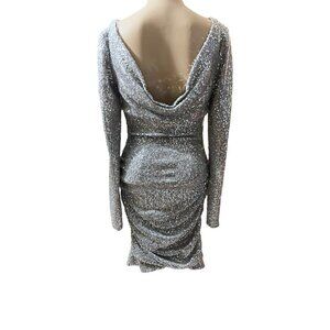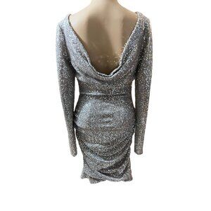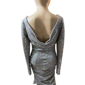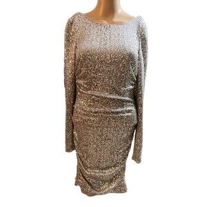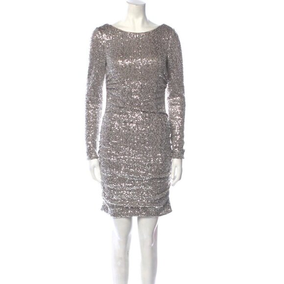Aidan Mattox Mini Dress Metallic Sparkle Sequins Party Cocktail Size 6. Metallic gold and silver sequins. Excellent condition. Perfect dress for upcoming holidays. Long Sleeve with Bateau Neckline. Concealed Zip Closure at Side.