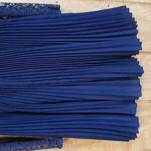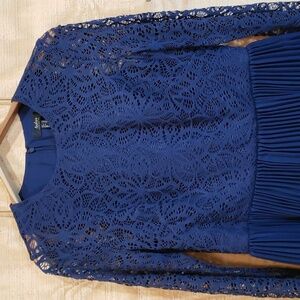 Aidan Mattox Navy Pleated Illusion Lace Fit and Flare Cocktail Dress Siz…