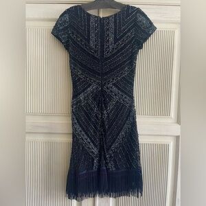 Aidan Mattox Navy Sequins Dress with fringe bottom. Worn once. Very pretty and sparkly on. Beaded and sequins. Great as an event dress. Sexy and waiting for a high heel!