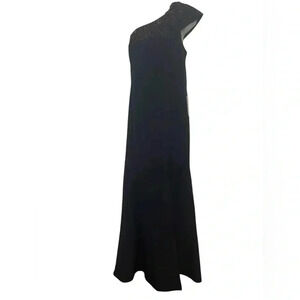 Aidan Mattox One Shoulder Beaded Navy Gown Size 14 NWT