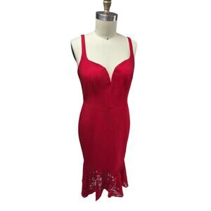Aidan Mattox Red Crepe & Lace Cocktail Dress NWT Sz 12