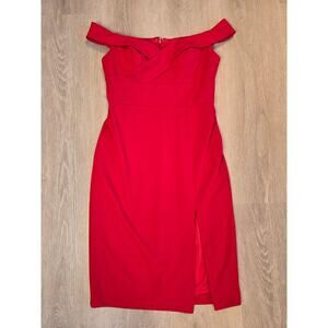 Aidan Mattox Red Off Shoulder Knee Length Slit Dress Size 8 Cocktail Party