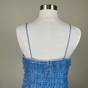 Aidan Mattox Sequined Fringe Mini Sheath Cocktail Dress Blue Size 6 Sleeveless