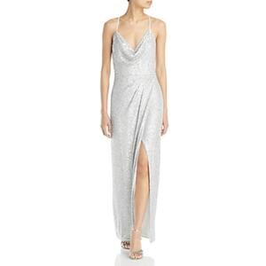 Aidan Mattox Sequined Strappy Back Long Column Evening Gown Silver Size 12