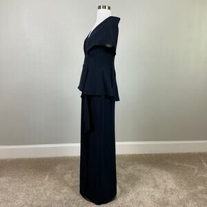 Aidan Mattox Shawl Collar A-Line Evening Gown Blue Size 4 Ruffled Thigh Slit