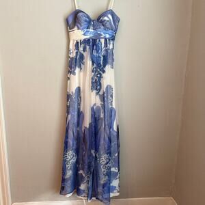 Aidan Mattox Silk Blend Strapless Dress Blue and White Chiffon