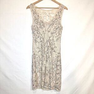 Aidan Mattox Silver Cream Sequin and Lace Neutral Mini Cocktail Dress Size 6